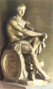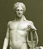Ares, hijo de Zeus y Hera, personificaba la guerra y la muerte violenta. También era el dios vengador del homicidio y a él estaba consagrado el Areópago de Atenas (colina de Ares o lugar de maldición), donde se juzgaban los delitos de sangre. Las sedes principales de su culto estaban en Tebas y Tracia. |