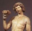 Dioniso o Baco nació del muslo de su padre Zeus. Era el dios del vino, de la fuerza vivificante en todas sus manifestaciones -vegetal, animal o humana-, de la fertilidad y la naturaleza. Vinculado a la danza, las fiestas y las representaciones teatrales. Está considerado la contraparte simbólica de Apolo: la pasión frente a la lógica, el sentimiento frente a la razón. |