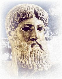 Rey de los mares Poseidón, hermano de Zeus, gobierna el mar, los manantiales y las fuentes. Era el señor de las tempestades y tormentas, así como de los vientos favorables y las travesías felices. Venerado especialmente por los navegantes, el centro principal de su culto estuvo en el istmo de Corinto, donde se celebraban en su honor los Juegos Istmicos |